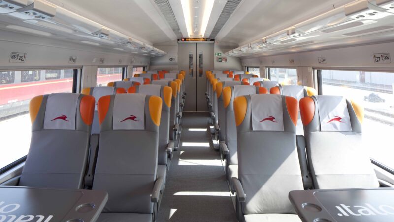 • Italo (El aspirante privado): Es una empresa privada moderna y chic. Solo tienen trenes de Alta Velocidad. Son rapidísimos y muy modernos, pero solo paran en las grandes ciudades.