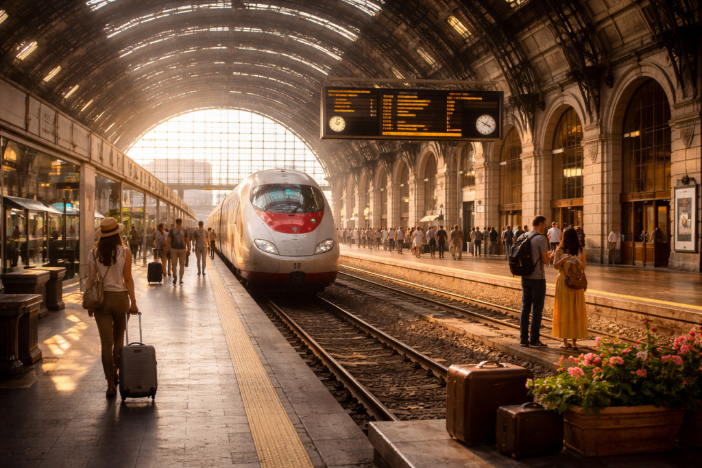 Grandes estaciones de tren: Vestíbulos principales como Termini en Roma, Santa Maria Novella en Florencia o Centrale en Milán, donde los viajeros suelen estar cargados y desorientados buscando sus andenes.